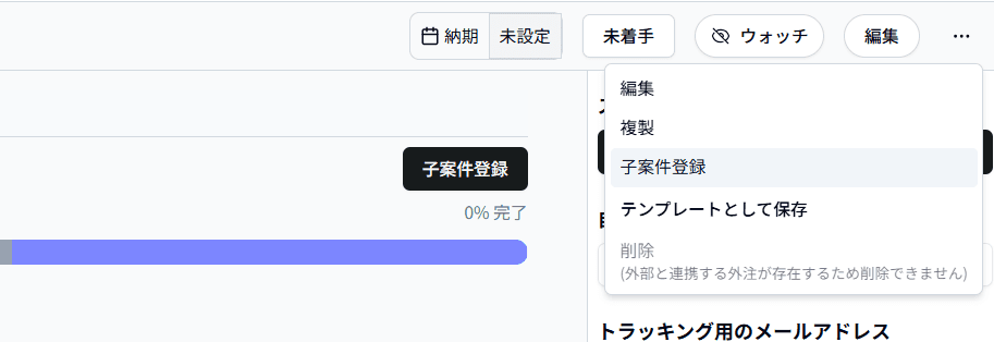 - 「保存」をクリックすると、子案件が作成されます