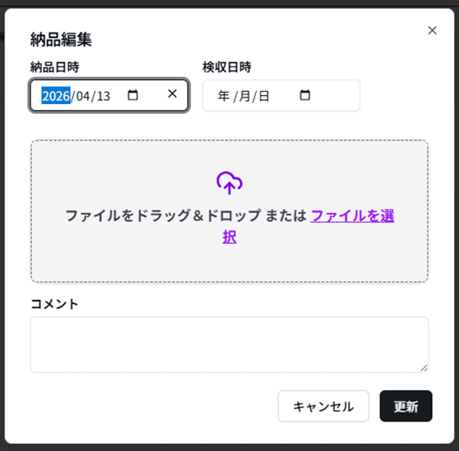ポイント: いったん自動で「検収完了/納品完了」になったあとに日付をクリアしても、ステータスは元に戻りません。間違えた場合は、明細の編集から手動で戻してください。