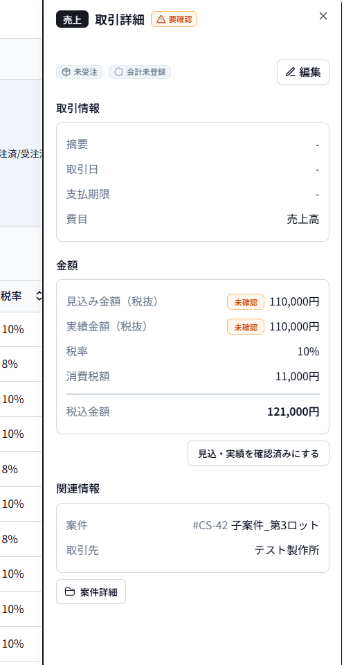 - 会計ステータス: 会計未登録